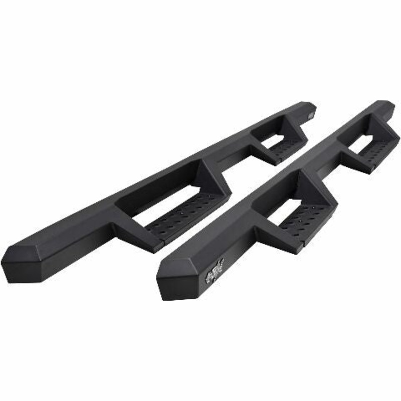 Westins HDX Drop Nerf Step Bars provide the rugged look and function that truck owners need and want. They feature a solid 1-piece steel construction and heavy duty punch plates creating high traction step areas. The HDX Drop Nerf Step Bars also feature Westins notched bar design which provides more than 2″ of additional toe/heel placement versus competitive brands. Available in a textured black finish that complements Westin HDX Bumpers. The HDX Drop Steps have vehicle specific applications and include a vehicle specific mount kit, installation hardware and instructions.